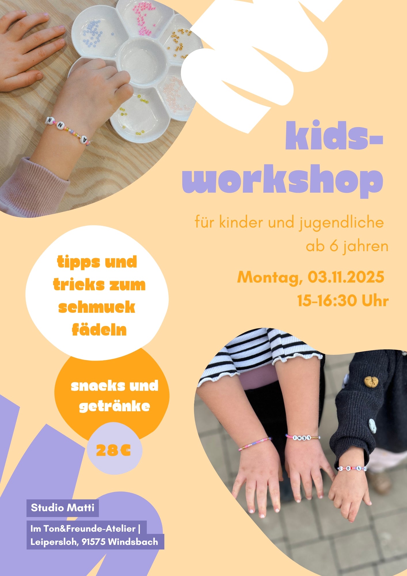 In diesem Workshop entdecken Kinder, wie sie ihren eigenen Schmuck gestalten können – ob Armband, Kette oder Freundschaftsband. Mit etwas Geschick und vielen Farben entstehen kleine Kunstwerke, auf die jedes Kind stolz sein kann.